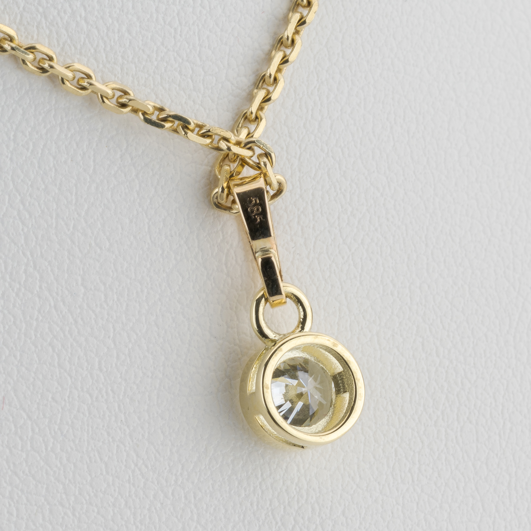 Dieser Diamant zeigt ein ruhiges, ausgewogenes Licht, das sich selbstverständlich entfaltet. Seine Präsenz wirkt klar und gesammelt, ohne jede Schärfe. Das Gelbgold rahmt diese Helligkeit mit sanfter Wärme. Ein Anhänger, der Licht als stillen Begleiter trägt.