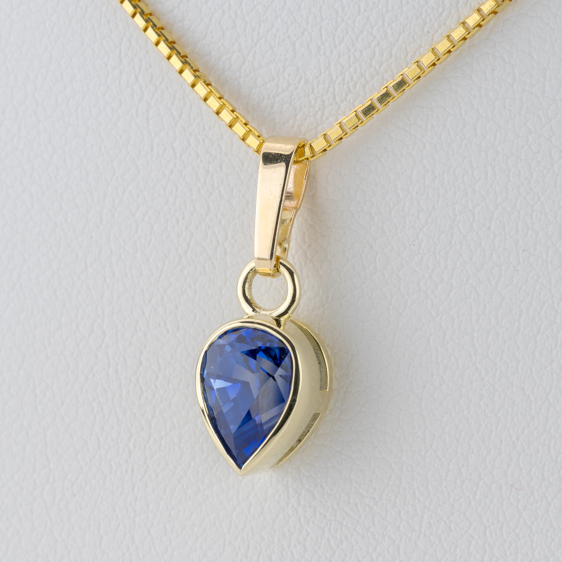 Dieser Saphir offenbart ein ungewöhnliches Blau, welches eher eher sanft nachhallt, als Aufmerksamkeit zu fordern. Der Stein schafft dabei, Blick auf sich zu ziehen, ohne sie gefangen zu halten. Das warme Gelbgold dazu unterstreicht die Ausgewogenheit des Steins auf subtile und zurückhaltende Weise, und rundet ihn würdig ab.