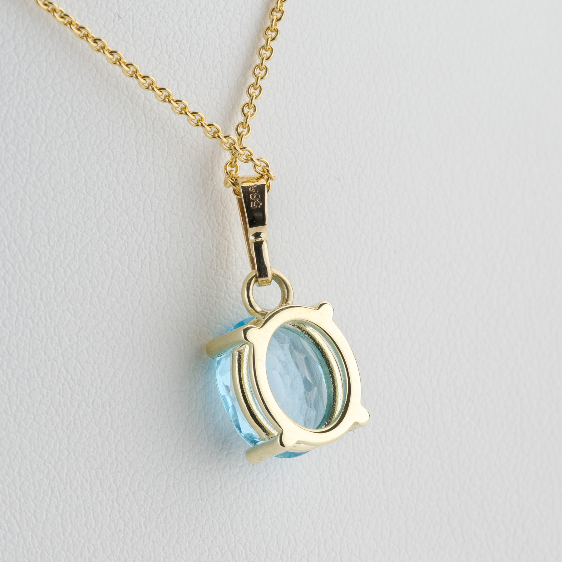 Dieser Topas zeigt ein klares, fein ausbalanciertes Blau, das sich ruhig und selbstverständlich entfaltet. Seine Farbe wirkt nahbar und offen, getragen von einer Leichtigkeit, die im Alltag ebenso stimmig ist wie zu besonderen Momenten. Ein Anhänger, der Farbe nicht betont, sondern fühlbar macht.