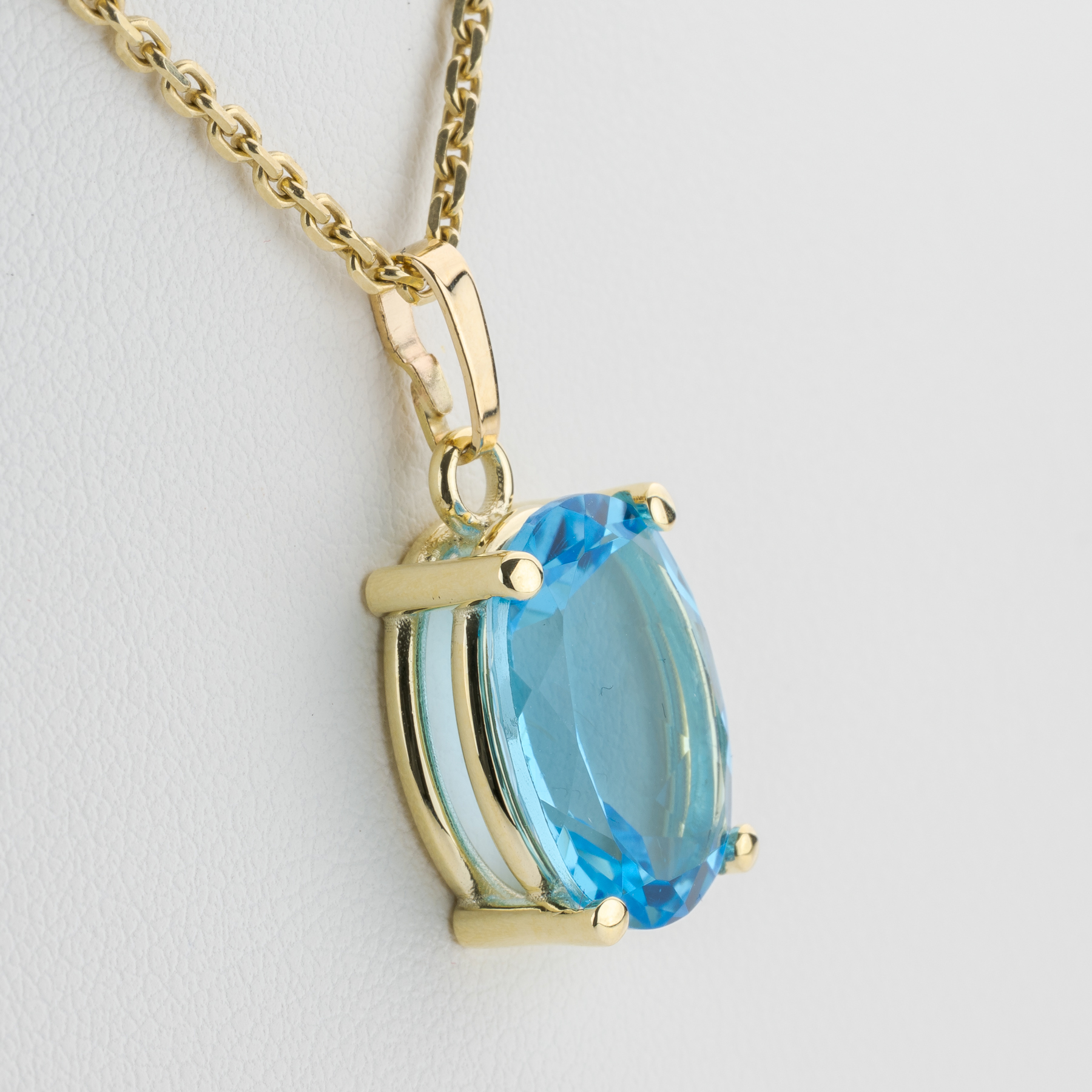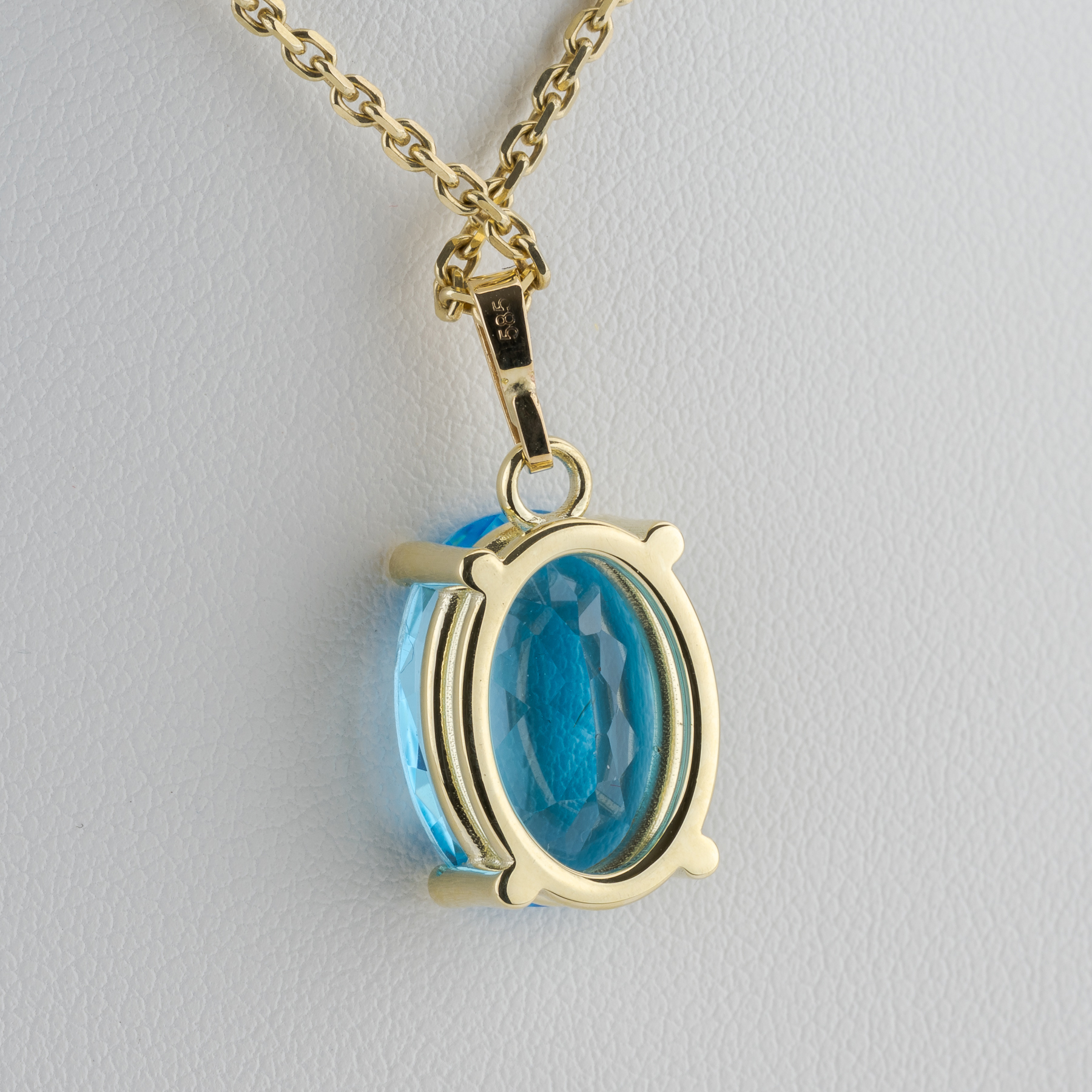 Dieser blaue Topas ist ein ganz besonderer Schatz. Er verbreitet eine Atmosphäre von Licht und Ruhe und seine Farbe wirkt sowohl tief als auch offen. Seine ruhige und selbstbewusste Art strahlt eine wunderbare Klarheit aus, die sehr angenehm ist. Eingefasst in warmes Gelbgold erhält der Stein Raum, um seinen ganzen Charakter ohne Einschränkungen zu entfalten.