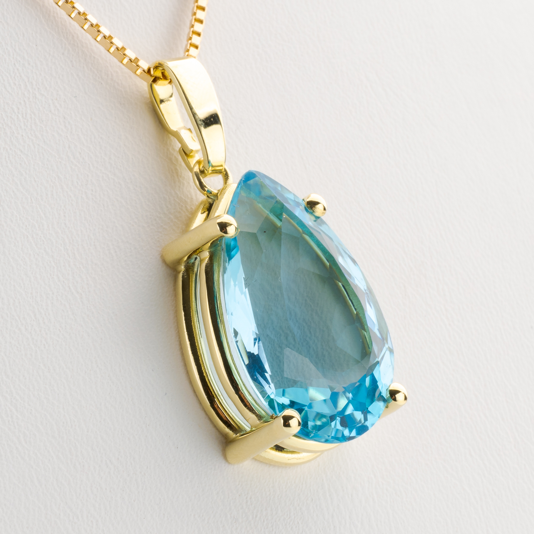 Wir freuen uns, Ihnen einen ganz besonderen Anhänger aus unserer eigenen Kollektion vorstellen zu dürfen, die den Fokus auf Farbedelsteine legt. Für diesen Anhänger haben wir einen großen, aquamarinblauen Topas von über 25 Carat verwendet, der in edles Gelbgold gefasst wurde.