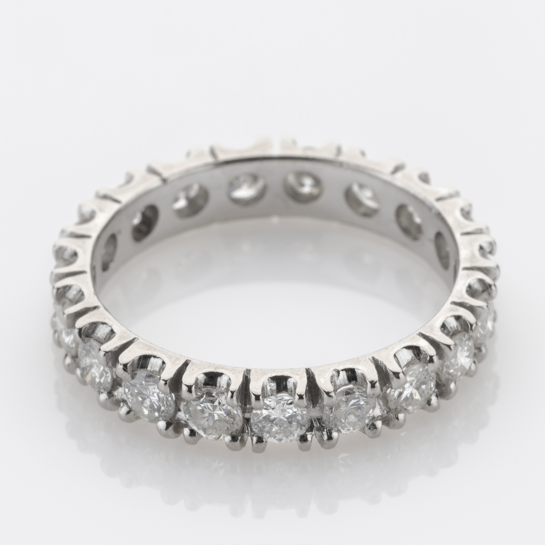 Ein Memoire-Ring ist ein Schmuckstück, das als edles Erinnerungsstück für besonders glückliche und frohe Ereignisse dient. Er ist in der Regel mit Brillianten, in diesem Fall 1.70ct in leuchtendem Weiß, rundum besetzt. Das schlichte und edle Design macht ihn zu einem universell tragbaren Schmuckstück, das sowohl als Kombinations- als auch als Vorsteckring eingesetzt werden kann.