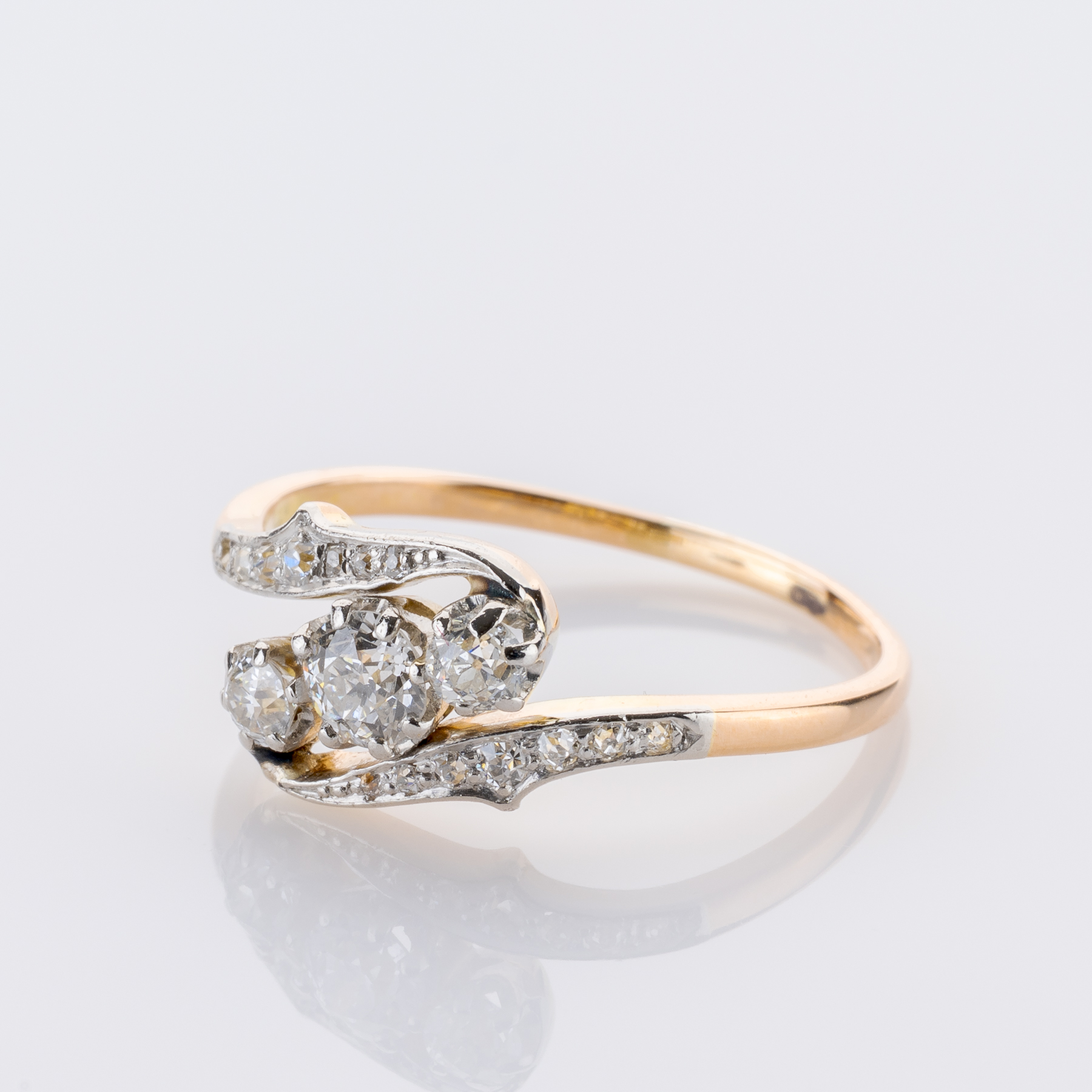 Ein spätes Art-déco-Design von bemerkenswerter Eleganz, getragen von Rhythmus, Linie und Bewegung. Die Diamanten folgen der geschwungenen Form in einer lebendigen Abfolge, die den Ring fast wie aus einem Zug gezeichnet wirken lässt. Neben der klaren Komposition treten in den weicheren Übergängen feine Jugendstil-Anklänge hervor.