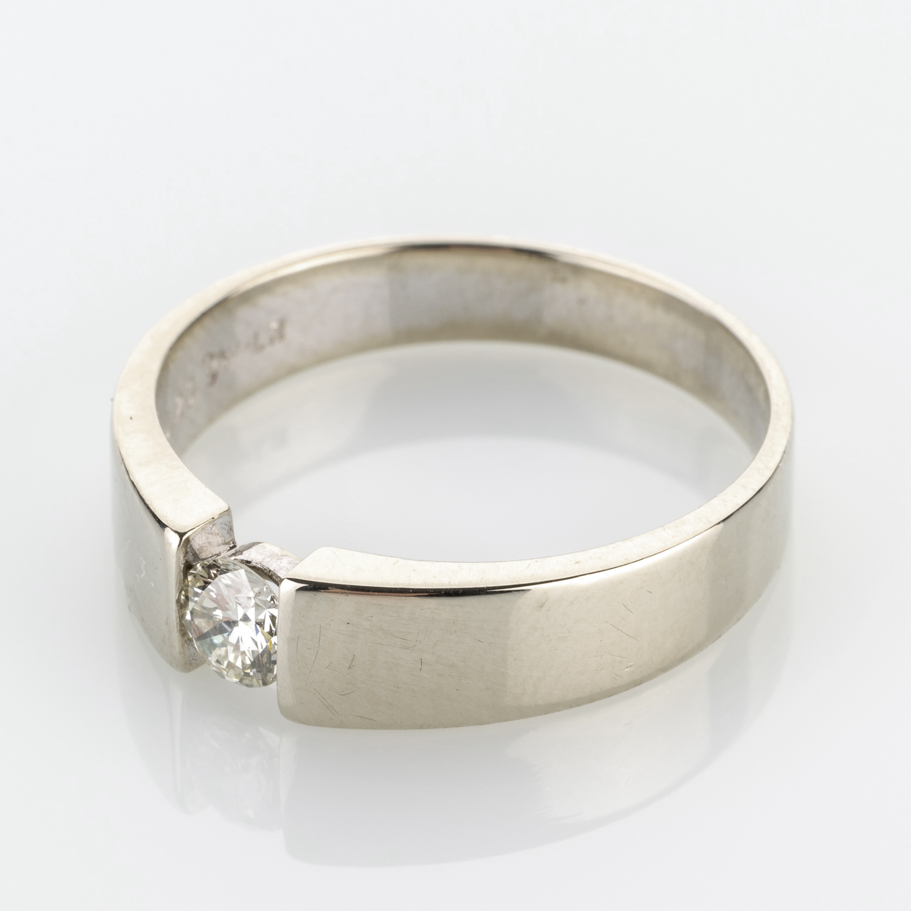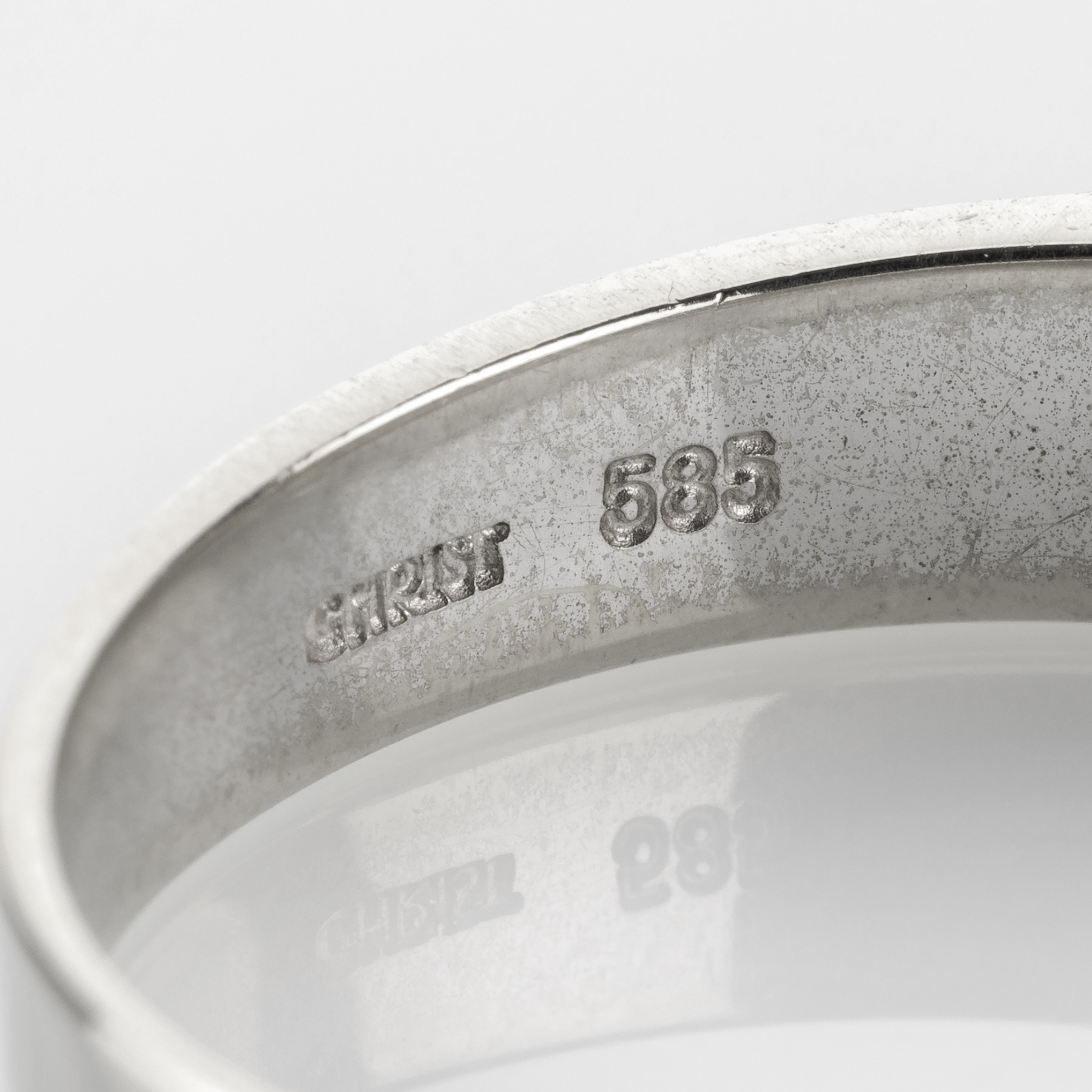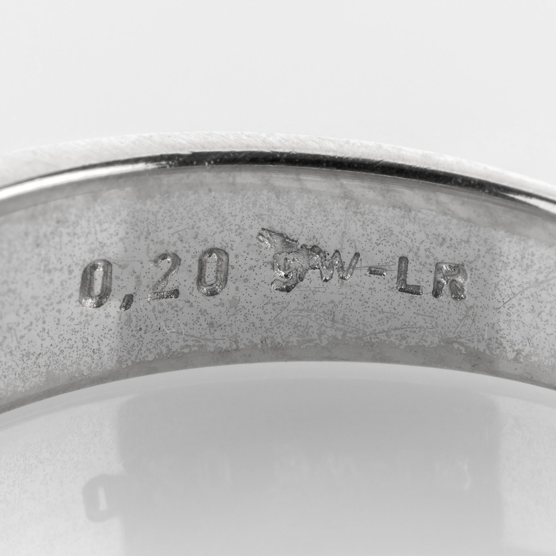 Ein Entwurf der Ruhe. Die Linie klar, das Weißgold satt und glänzend. Zwischen zwei Flächen, präzise gefasst, ruht ein einzelner Brillant – nicht schwebend, sondern gehalten von der Idee des Minimalen. Dieser Ring ist kein Blickfang – er ist ein Zeichen. Für Reduktion. Für Haltung. Für die stille Schönheit, die nichts beweisen muss.