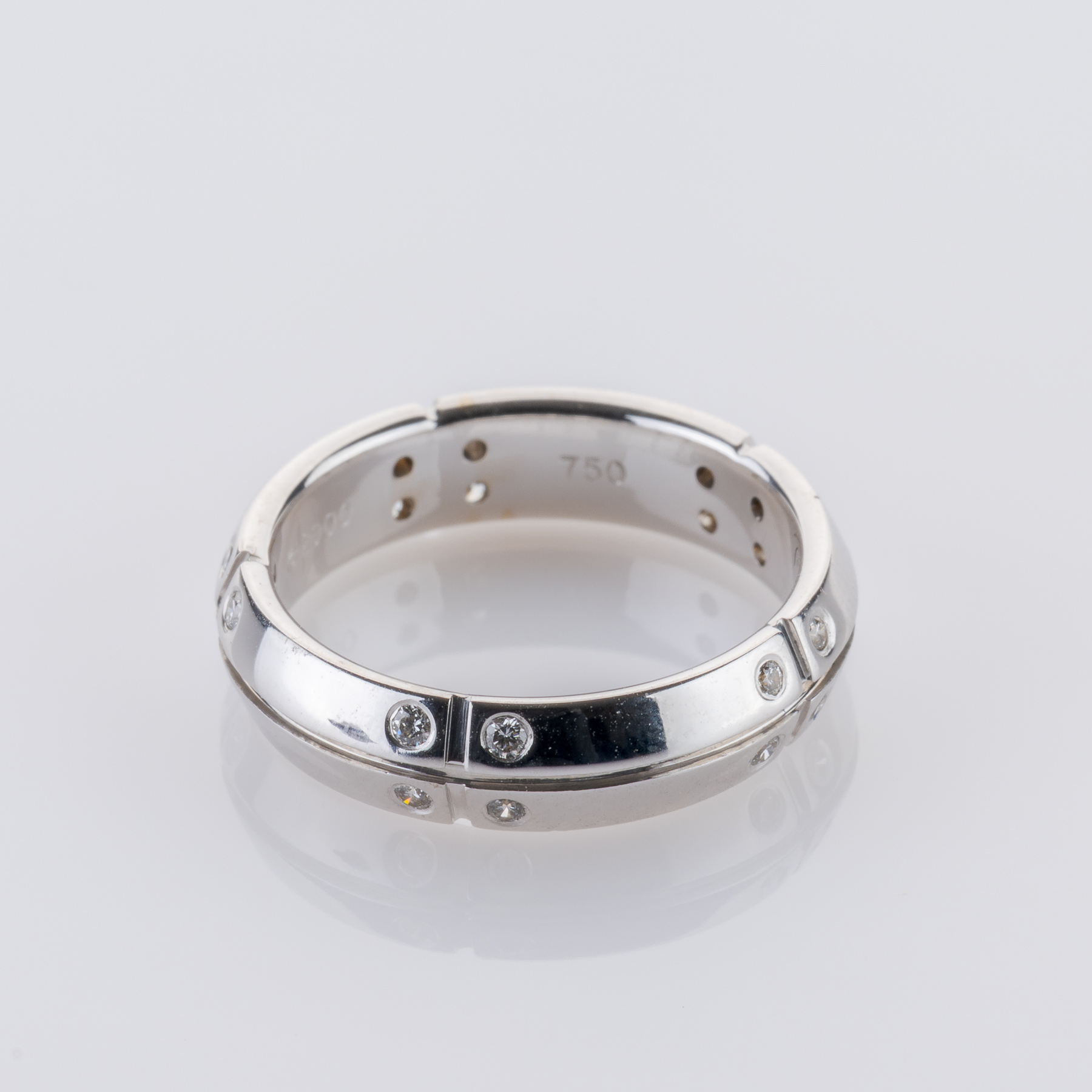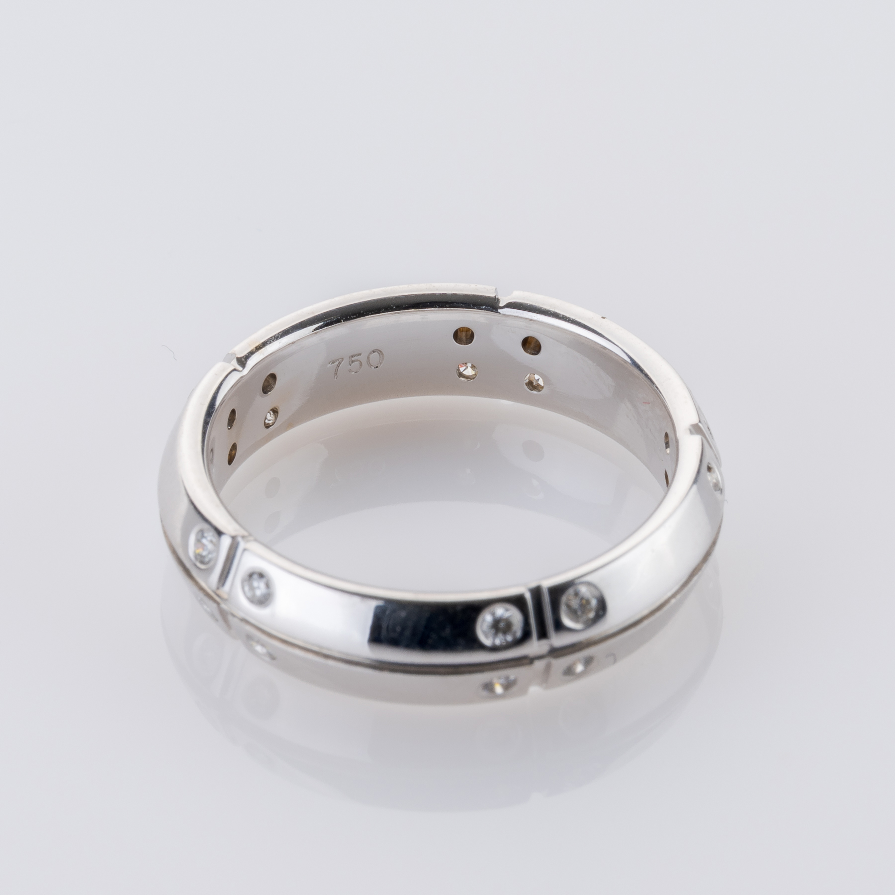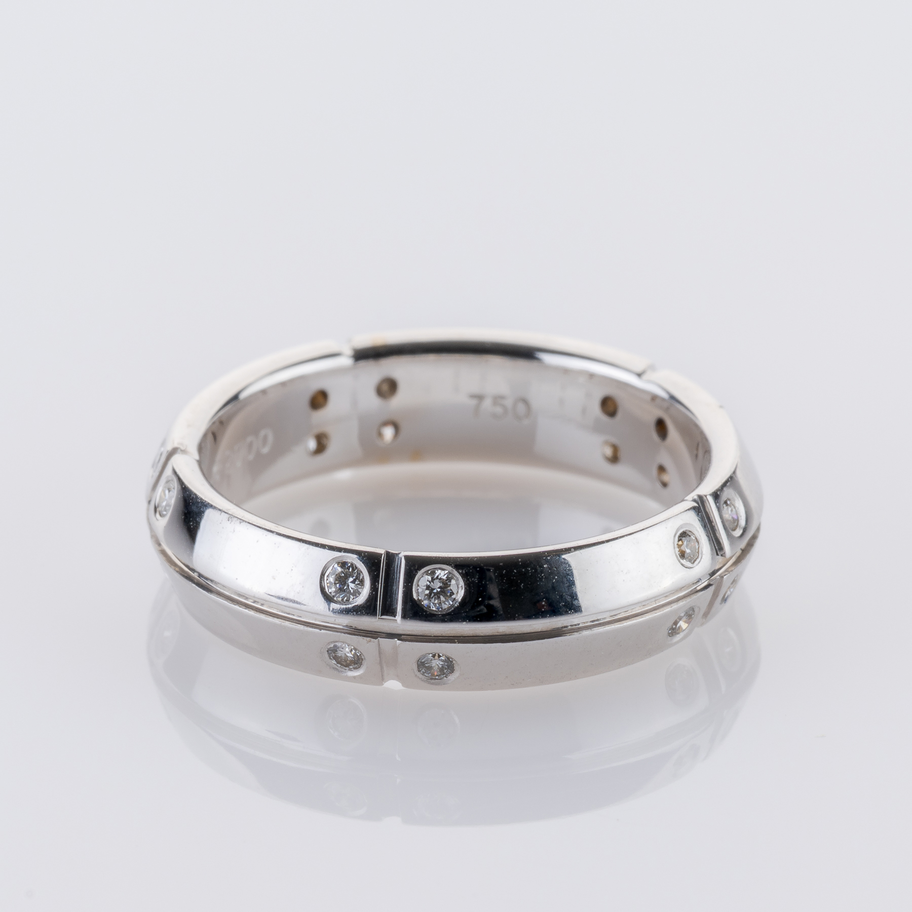 Dieser Ring von Tiffany & Co. beweist, dass Eleganz nicht kompliziert sein muss. Kühles Weißgold bildet den perfekten Hintergrund für funkelnde Brillanten, die als architektonisch wirkende Akzente wirken. Sie dienen dabei nicht nur der Zierde, sondern verleihen einen Hauch von Eleganz, ohne aufdringlich zu wirken. Diese perfekte Balance aus Zurückhaltung und Präsenz macht ihn zu einem besonderen Stück aus einem besonderen Haus.