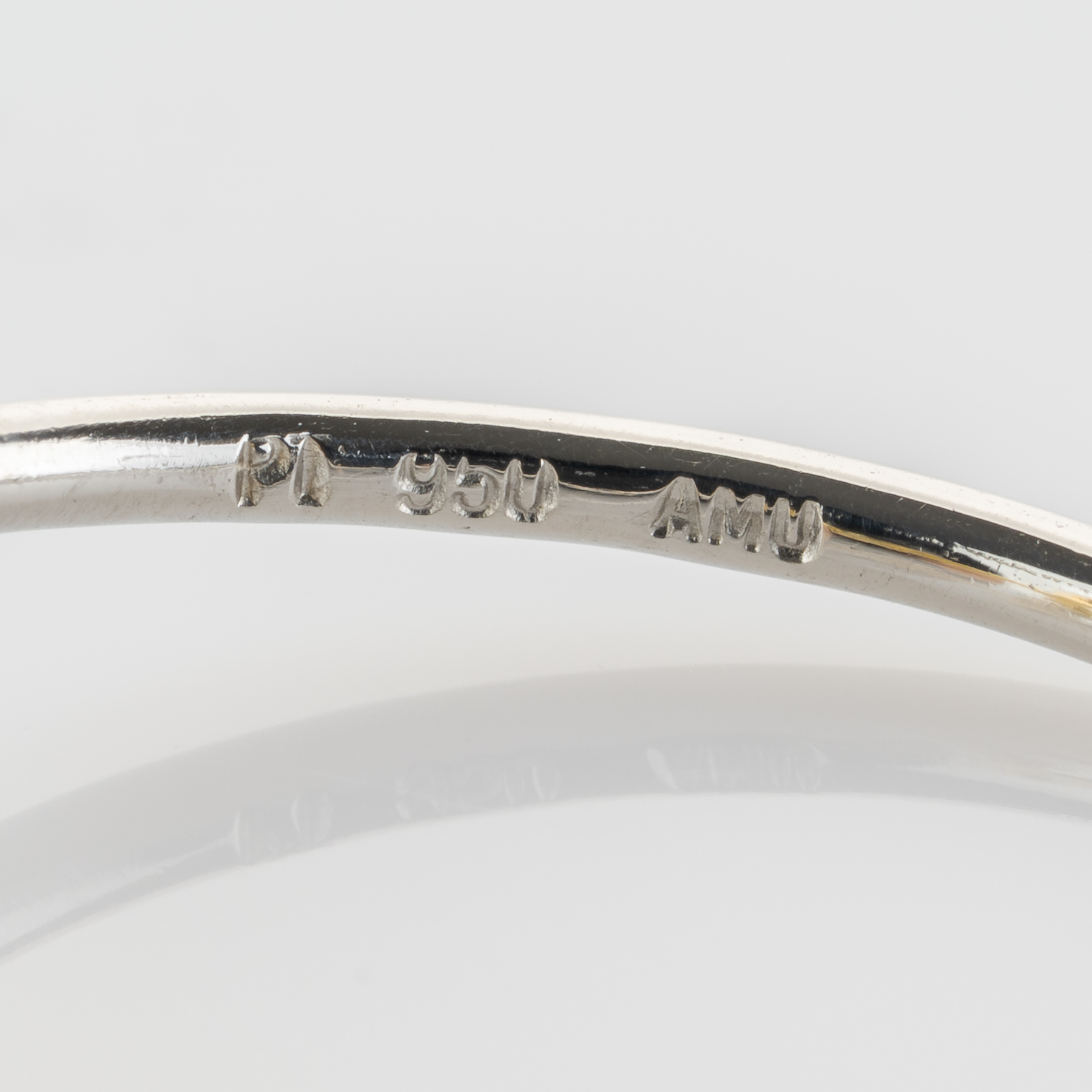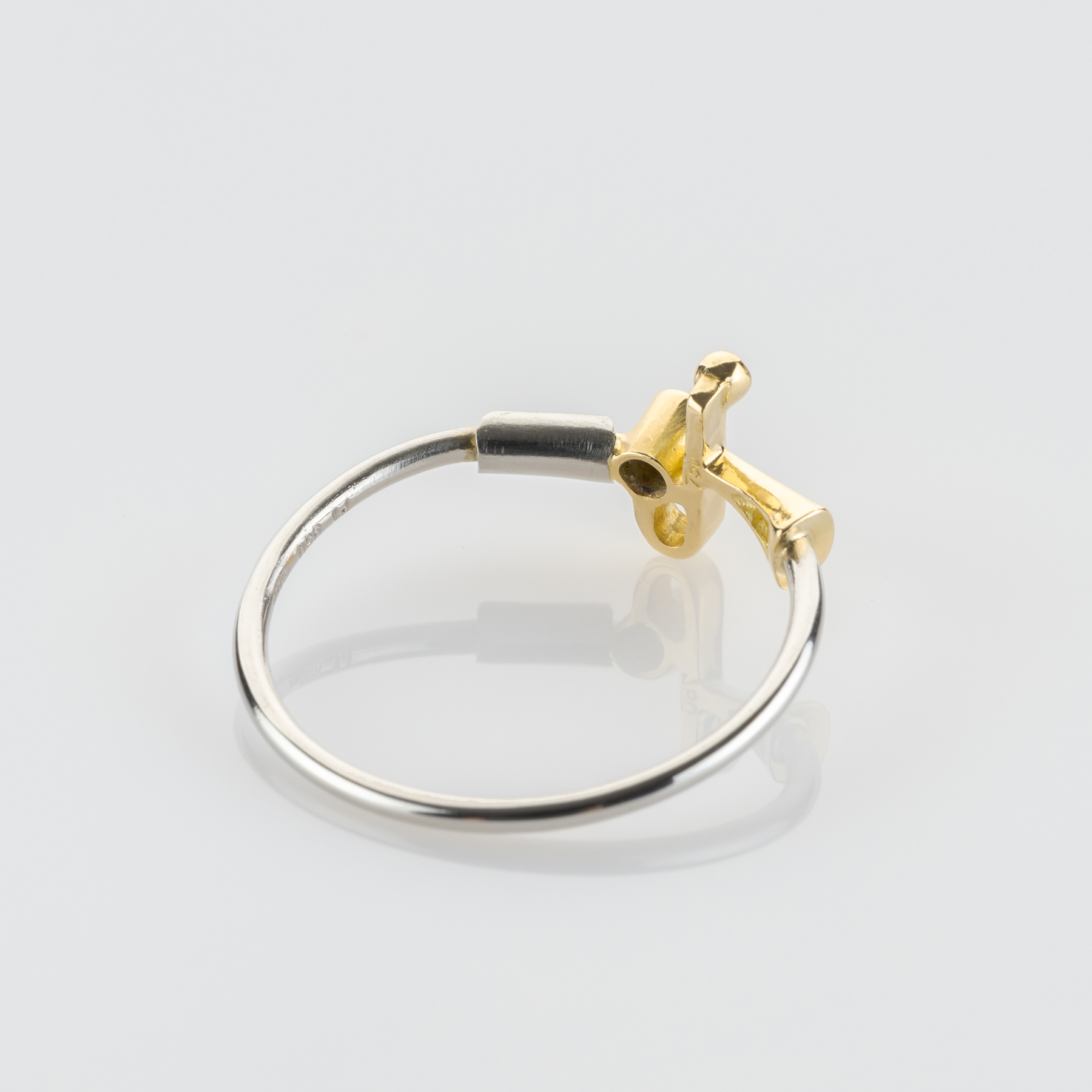Ein Ring wie eine kleine Skulptur: Dieses außergewöhnliche Stück aus den 1980er Jahren verbindet kühles Platin mit warmem Gold zu einer raffiniert abstrakten Komposition. Die offene Form und die feinen Kontraste erinnern an moderne Kunstobjekte – minimalistisch und ausdrucksstark zugleich. Ein kleiner Brillant verleiht dem Design ein präzises Funkeln und hebt die grafische Eleganz subtil hervor.