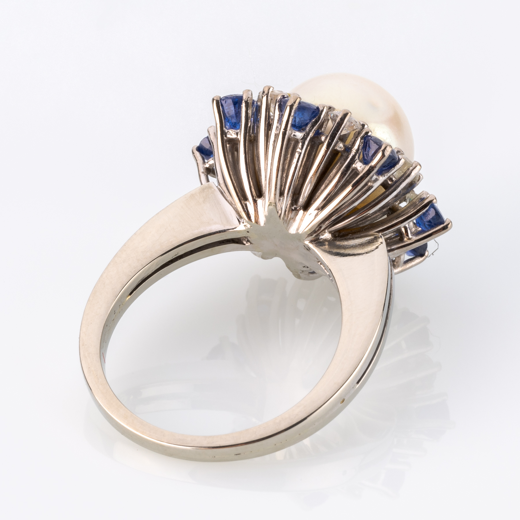 Dieser klassische Ring mit Perle ist ein zeitloses Schmuckstück, bei dem die zentrale Perle mit einem Kranz aus funkelnden Brillanten und Saphiren eingerahmt wird. Die Kombination von Perle und Edelsteinen verleiht dem Ring dabei eine elegante Ausstrahlung, die ihn zum perfekten Accessoire für festliche Anlässe macht.