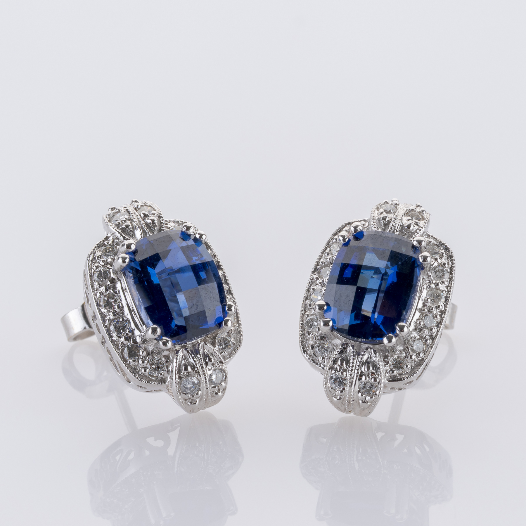 These stud earrings combine delicacy with evening glamour. Two sapphires of exceptional color take center stage, their deep blue lending the design a refined and confident presence. Accented by subtle diamond sparkle, the composition balances elegance and radiance without excess. A refined piece from the 1980s, sophisticated, luminous, and timelessly appealing.