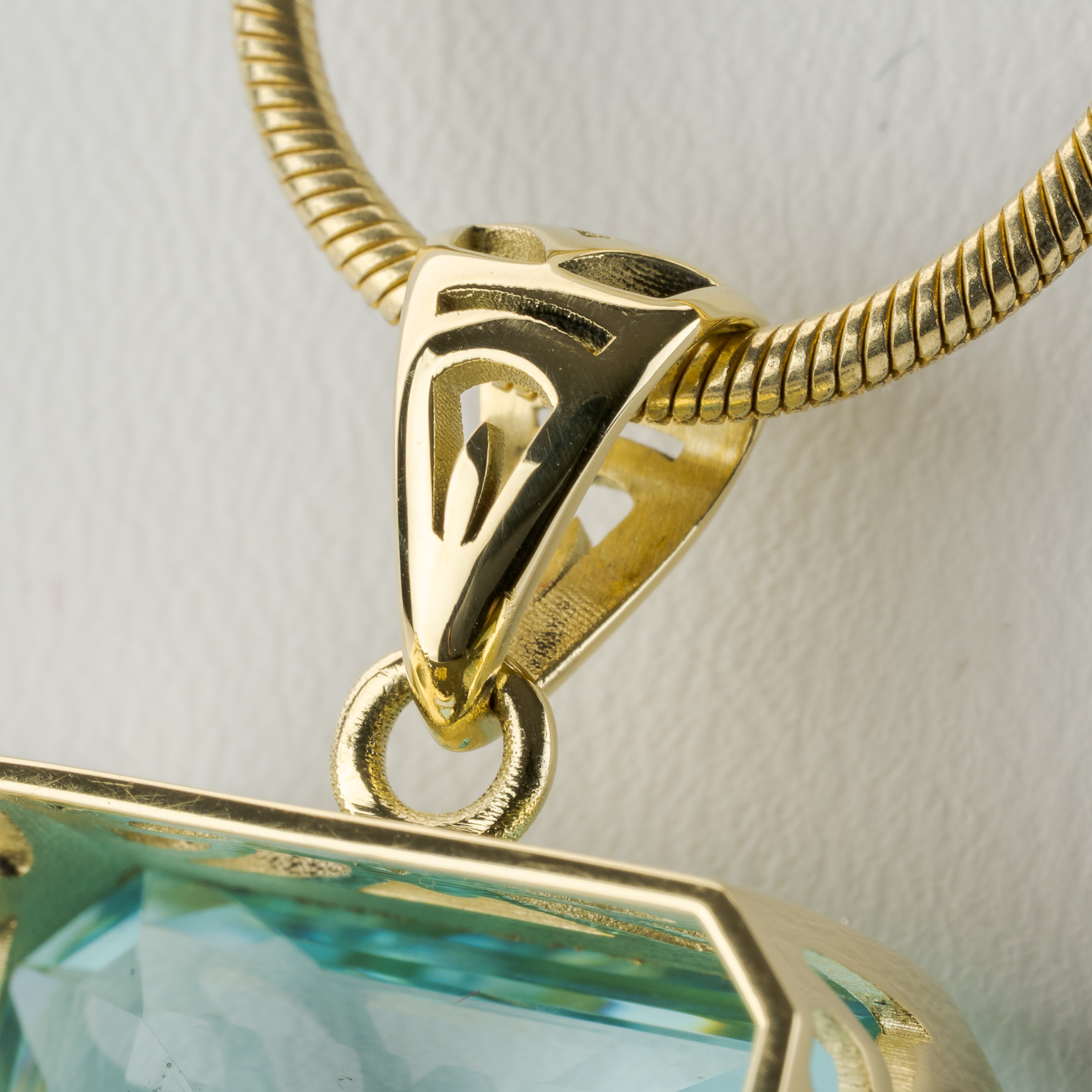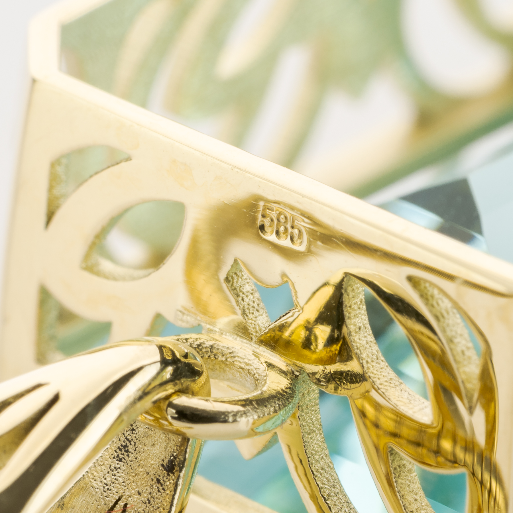 Aquamarines are certainly among the most popular gemstones in the world. The soft blue of this gemstone, which today is mainly found in South America and Africa, has fascinated mankind since the early 18th century and, as this classically cut specimen of 45 carats proves, can also reach considerable dimensions in fine qualities. The stylized water lilies that adorn it are a lovely design element that highlights the theme of "water" in a wonderfully subtle way.