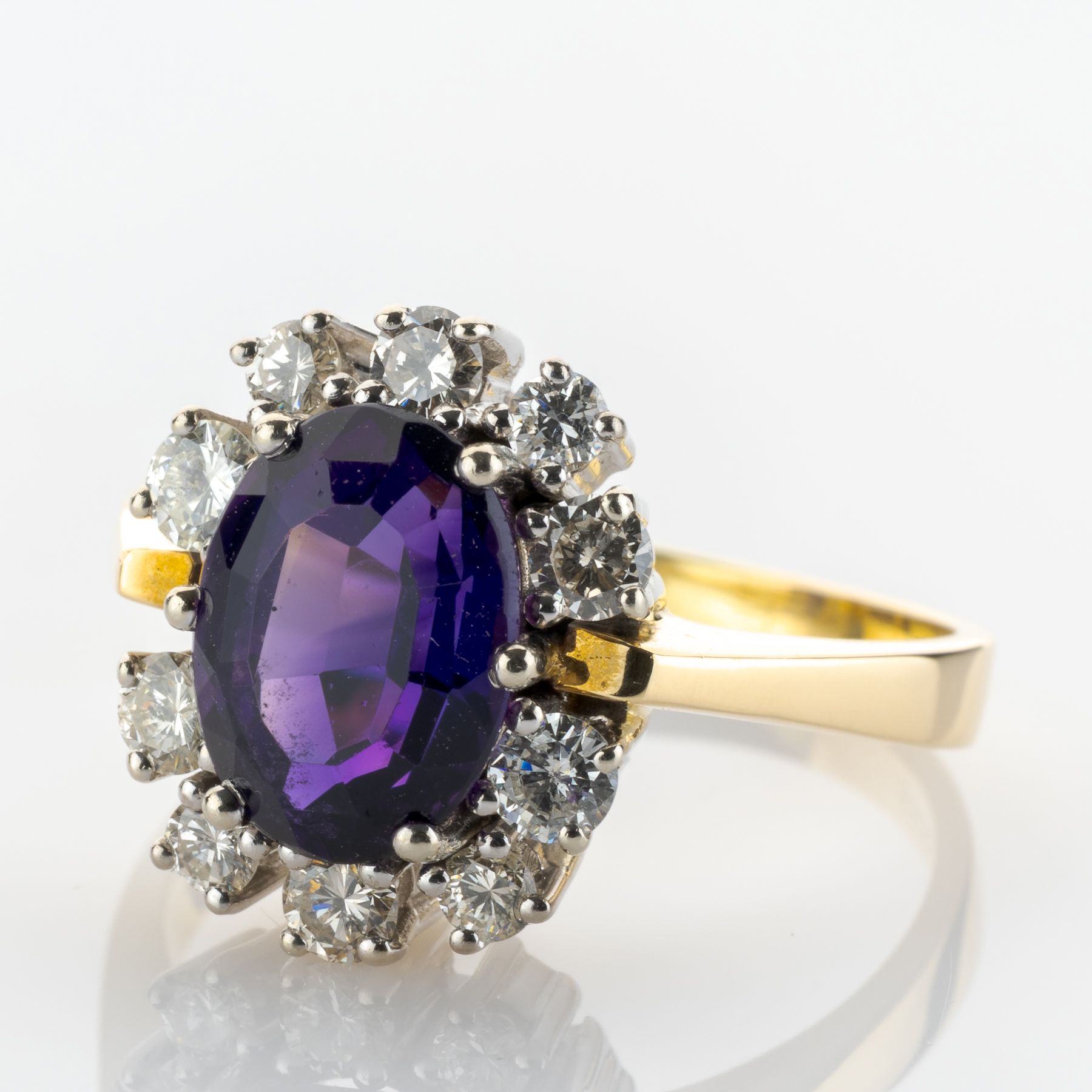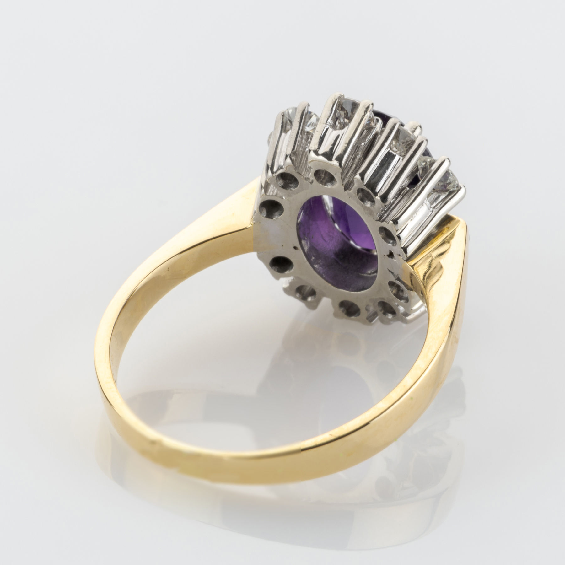 Although cocktail rings played a formative role in the world of jewelry for a long time, they were somewhat forgotten in the middle of the 20th century. Thanks to the English royal family and the growing fascination with the Roaring Twenties, however, they experienced a spectacular revival. A deep purple amethyst framed by 10 diamonds was chosen as the centerpiece for this beauty.